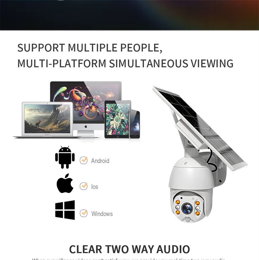 5. PIR + เรดาร์เหนี่ยวนําคู่---เมื่อกล้องรักษาความปลอดภัยบ้านพลังงานแสงอาทิตย์พบว่ามีคนบุกเข้าไปในพื้นที่ตรวจสอบกล้องจะสามารถถ่ายภาพและผลักดันข้อมูลการเตือนภัยไปยังโทรศัพท์มือถือของผู้ใช้อย่างแข็งขัน